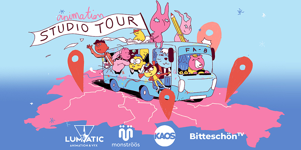 Highlights des HUB ist die Animation Studio Tour, die als Format erstmalig stattfindet und sich als regelmäßiger Bestandteil des Animation HUB etablieren soll. Hier kommen Akteur:innen aus der Animationsbranche, der Förderlandschaft, dem Öffentlich-Rechtlichen Rundfunk, der Politik und Interessierte zusammen, um auf einer vierstündigen Bustour durch Berlin vier verschiedene Standorte und Firmenstrukturen kennenzulernen – eine Busfahrt als gemeinsamer Netzwerkevent, Studio-Seeing und Standortpräsentation!